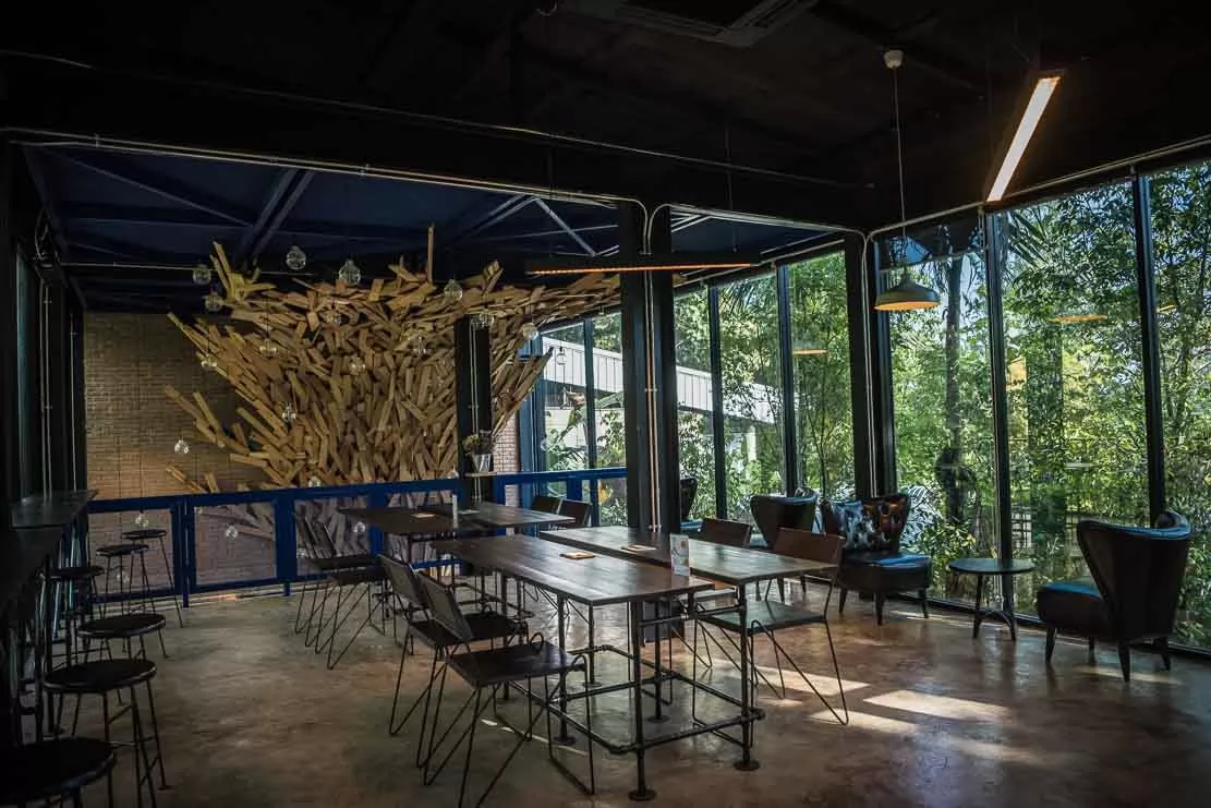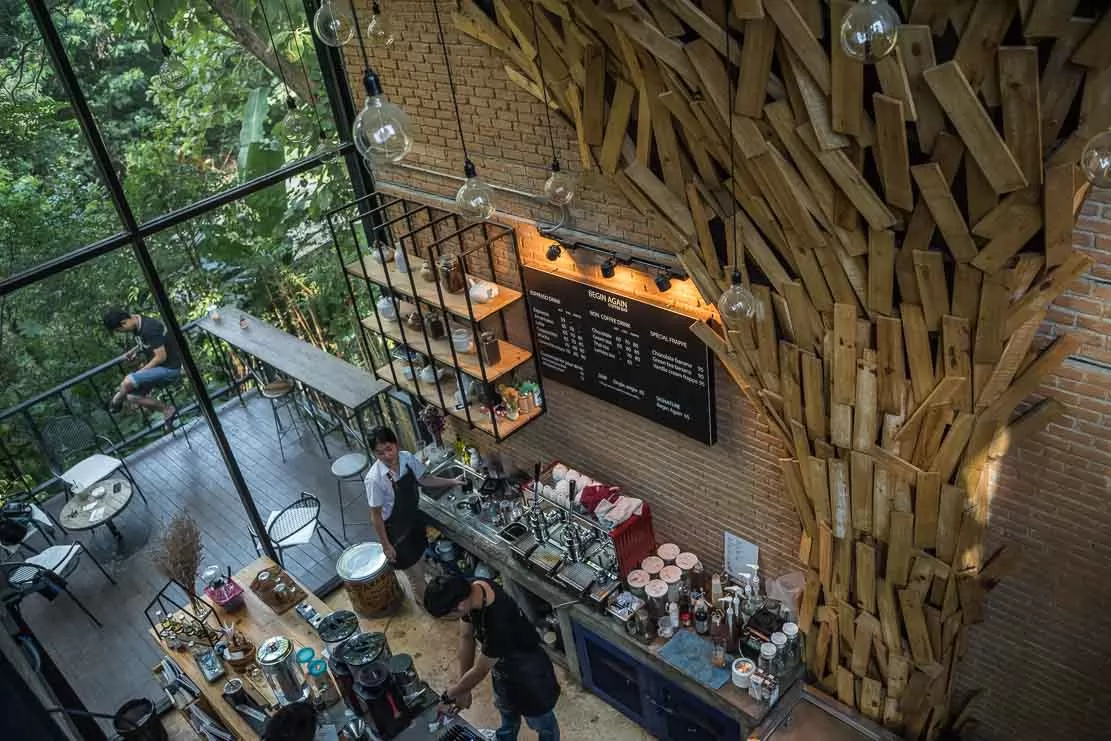 距離藝術村Baan Kang Wat不遠處,就能看到這座引人注目的巨大玻璃屋—Begin Again Cafe'。