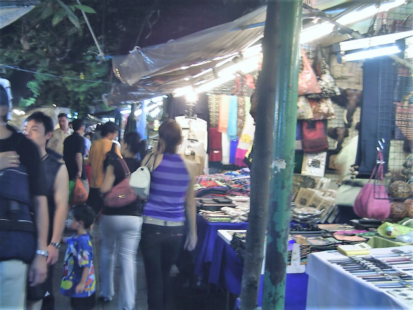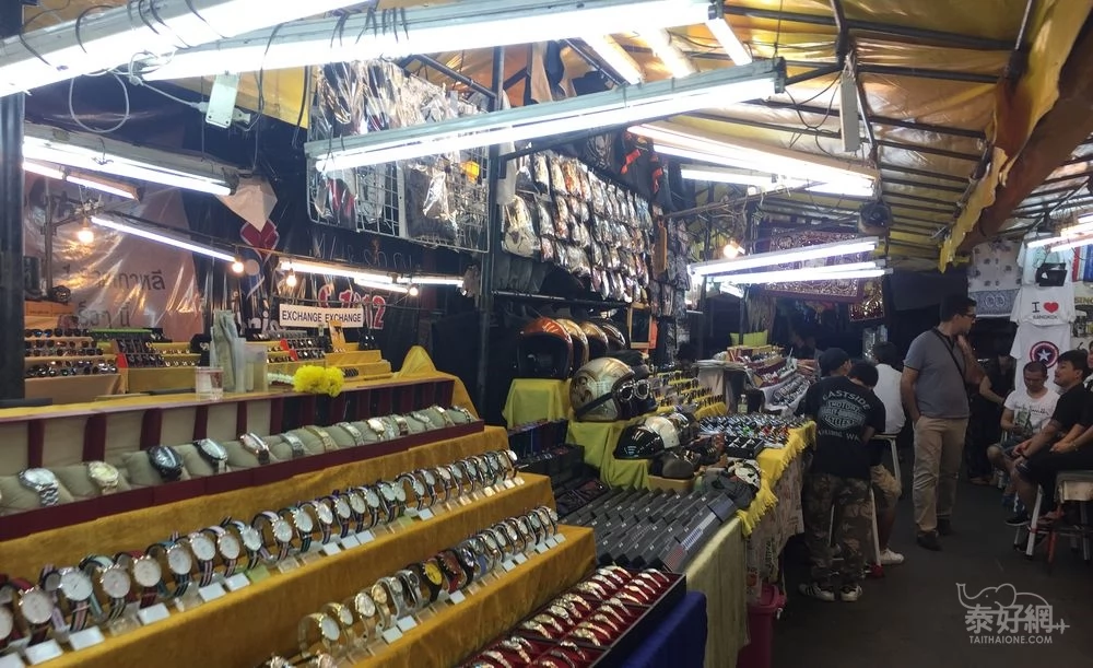 販售商品:流行服飾及Levis牛仔褲;仿冒手錶;Louis-Vuition皮包和皮飾;設計有國性及泰國風的手工藝檯燈、木花瓶;一些仿冒的古董;琳琅滿目的銀器、鍚器、石雕的工藝品等,各式泰國風味的小商品應有盡有。