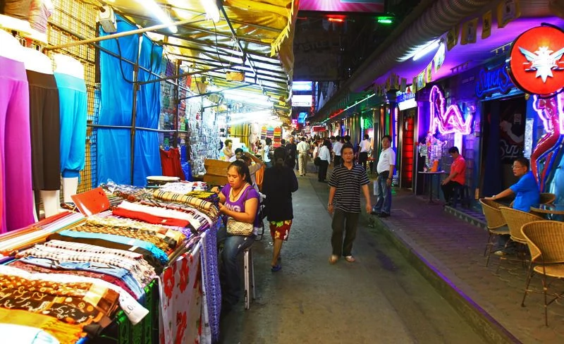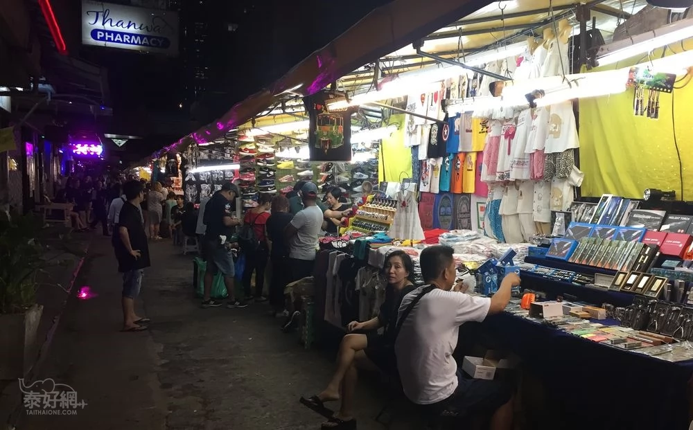 帕蓬街上的紅燈區,一連串都是酒吧,成人秀場的工作人員拿著價目表來招覽客人,穿過帕蓬街,來到蘇里翁路,兩旁也有些攤位,物品都差不多。