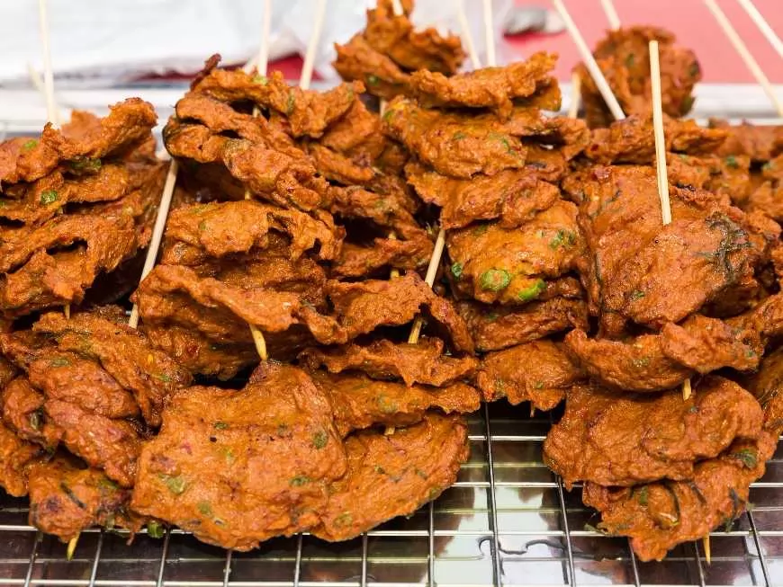 每家都有不同的特色,光吃炸雞就夠美味了,但別忘了諉有的還搭配自製的沾醬。價位不貴,小雞翅和雞腳每隻約10銖、小雞腿15銖、大雞腿25-30銖。