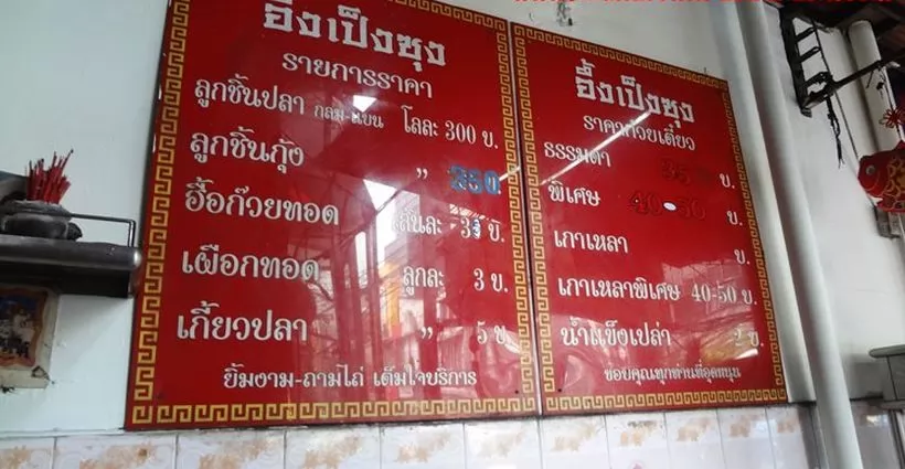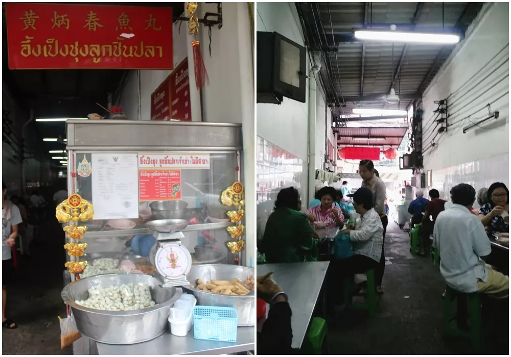 黃炳春魚丸(อึ้ง เป็ง ชุง ลูกชิ้นปลา)隱身於中國城耀華力路上小巷子的小騎樓旁,經營60多年的小吃店,以手工製作潮汕風味的魚丸出名,經常人聲鼎沸。