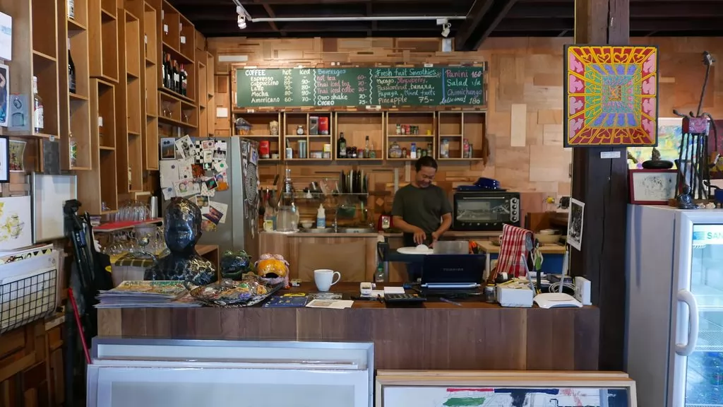 這裡主要的營業項目,仍是展示與販售當地藝術家的作品,老闆充滿感情的說,這裡不只是咖啡館,他希望透過這種經營的形式,吸引更多人了解這些藝術品,聽他一一介紹當地藝術家也挺有趣的。