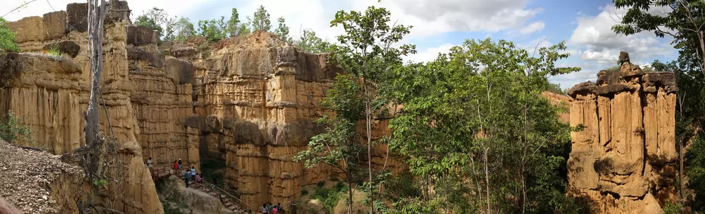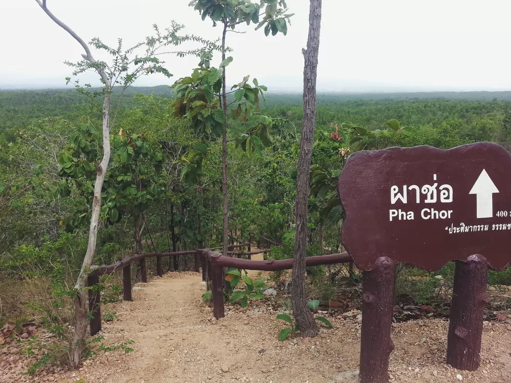 過了公園的買票閘口後,沿指示牌行6公里才會到Pha Chor的入口,再沿步行徑再行400米左右便到景點,由土壤侵蝕而成的獨特地形,據稱數百萬年前曾是濱河的河道,隨著河道的改變,堆積成層的泥土及自然侵蝕,形成造型奇特的石柱及高約30米的峭壁,頗壯觀的,有點像美國西區牛仔的荒野場景。
