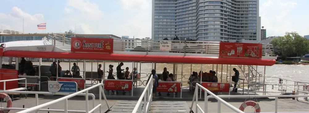 來往湄南河的交通+觀光船共有5條線,分別以船頭船尾掛綠旗、黃旗、橙旗、藍旗和不掛旗相區別。