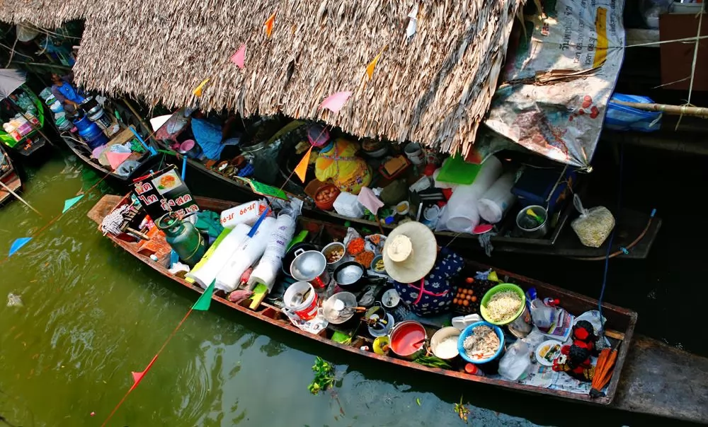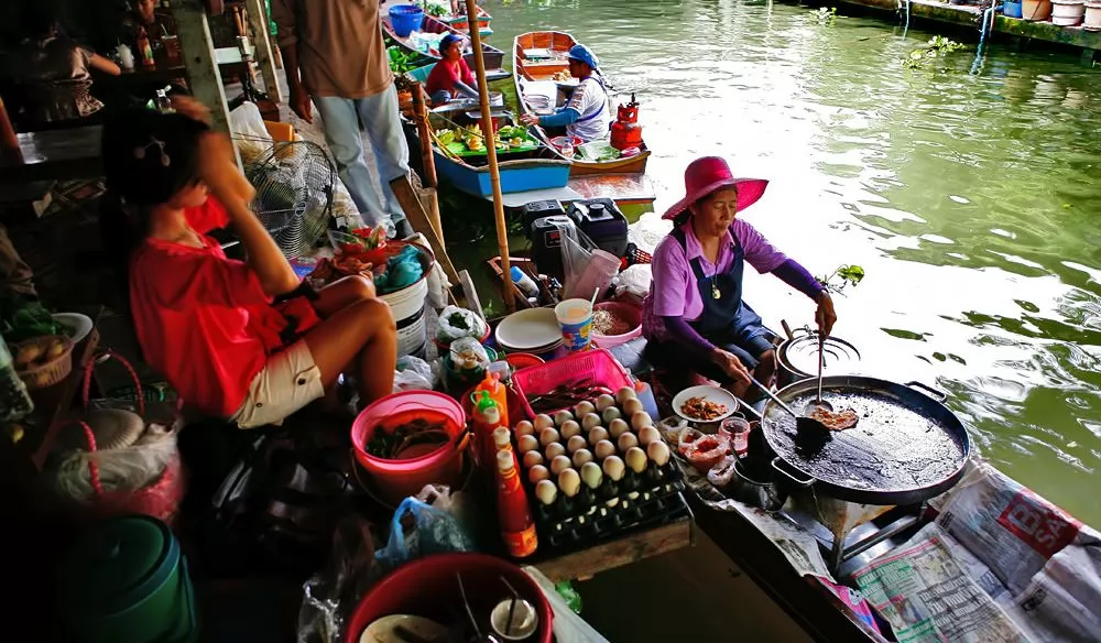 美食一直是遊玩水上市場的主題,坐在高度不足 10 公分的小木凳上,點上由停在河岸旁小木船上烹製的美食,湯麵、泰式炒河粉、泰式米粉或蚵仔煎,價格實惠,氛圍輕鬆愉悅,而且趣味十足,同時極富異國情調!