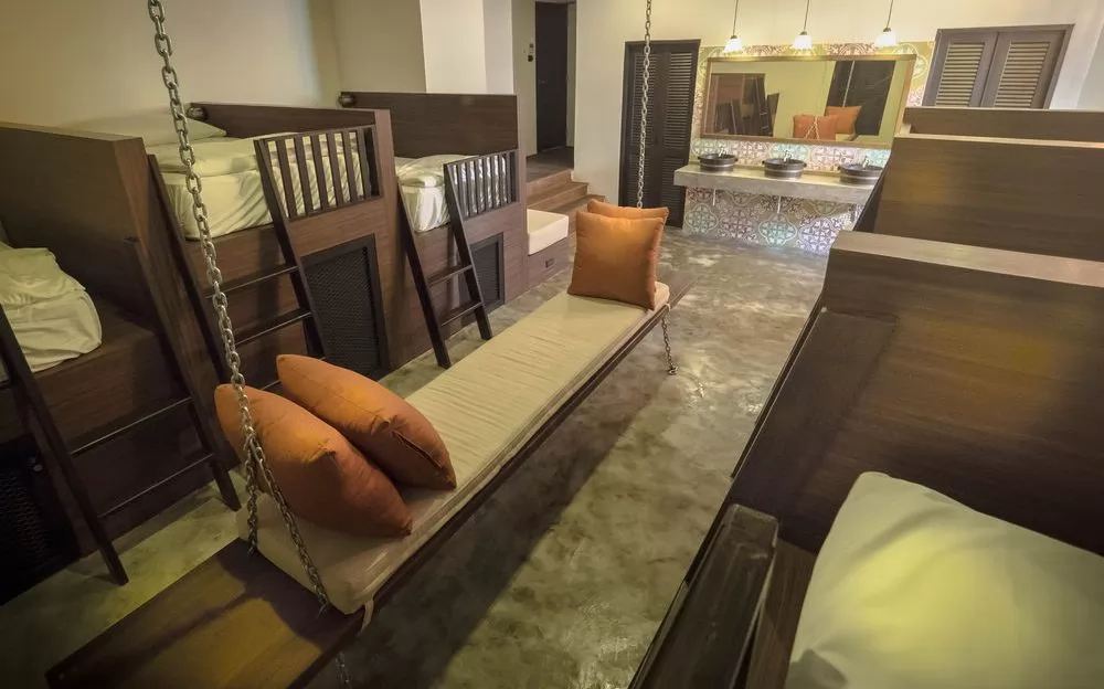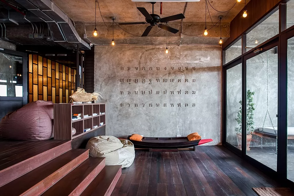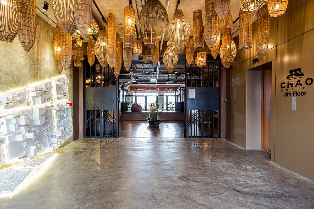 Chao Hostel的裝修走的是泰式傳統風格,從通舖房、雙人房到公共的閱讀空間、用餐空間,在設計上都是以泰國古早時期的河畔建築風格作為主題,都會看到極具特色的竹條吊燈,古樸木門,花紋牆磚,懸吊式沙發,小舟造型花盆等細節部分的佈置與擺設,在為營造充滿泰國傳統風味的住宿環境。