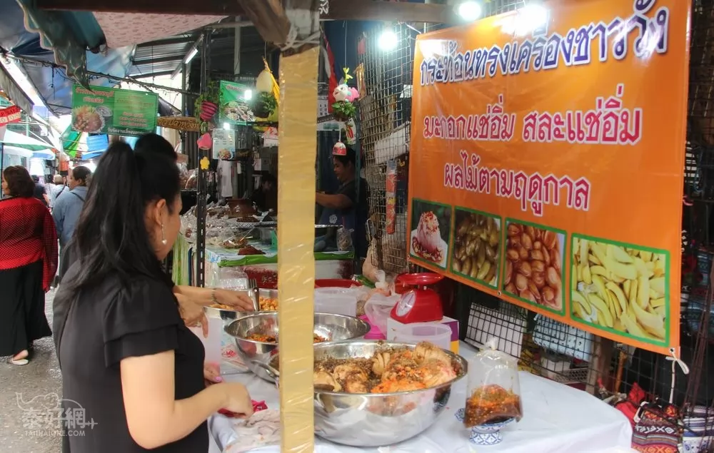 泰國人愛吃芒果,熟的、生的之外,也喜歡吃醃製的酸芒果,又酸又脆的芒果解嘴饞!以重量來計價。