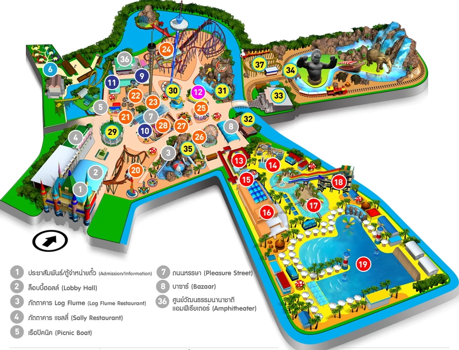 這裡斥資30億泰銖打造而成,包含豐富水上遊樂項目和上百種機動遊戲設施,占地高達36萬平方公尺,分為水世界(Water Park)、X Zone、Family World、Fantasy World、Small World五大區。同時也是世界上最大的水上公園之一,在這裡玩上1整天才過癮,全家大小歡樂戲水的夢幻天地。