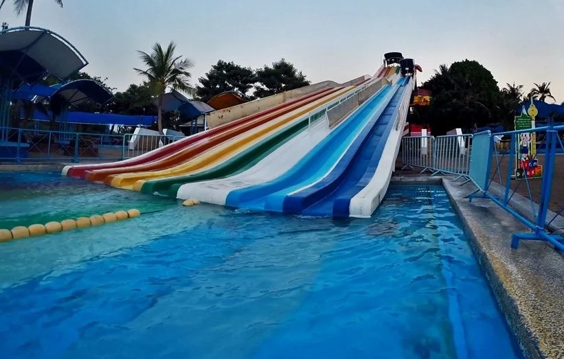 七條相連滑道從高處直衝廣大水池,超級刺激,深受當地人喜愛,至今已有三千多萬人次玩過,是您絕對不能錯過的高人氣遊樂設施。