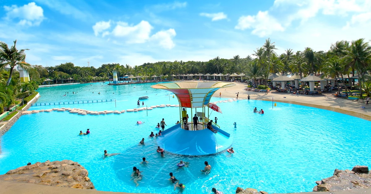 人造海洋娛樂場,長達500米的螺旋型水上滑梯之外,它的旋轉漂流水道、巨大水流滑梯、旋轉滑梯、還有摩天輪、雲霄飛車、熱氣球等驚險刺激的項目。