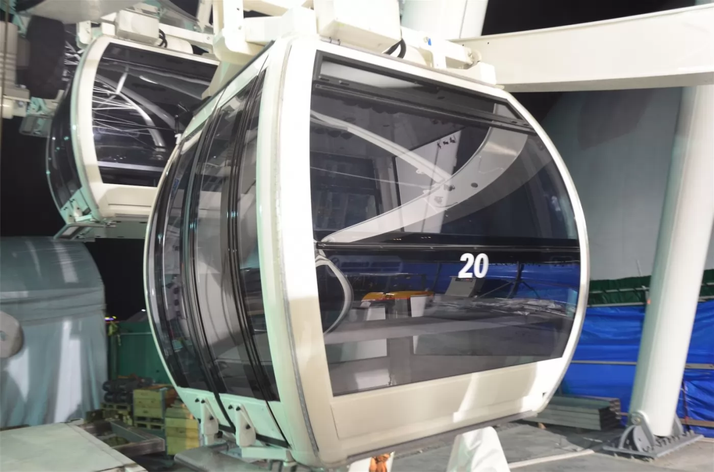 這座高60公尺、設有42個吊廂的摩天輪,夜間綻放出紫色的色彩,廣場上又有現場音樂,營造出了一副夢幻的場景。