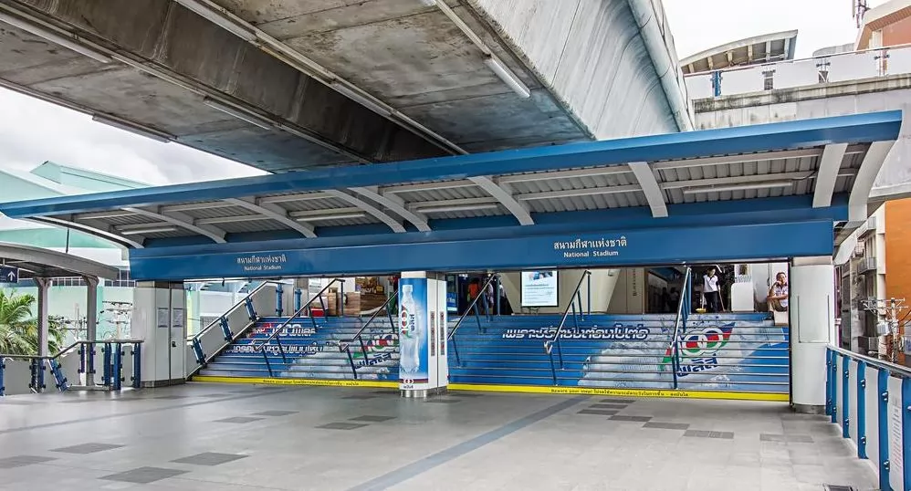 BTS的國家體育館站(National Stadium Station;สนามกีฬาแห่งชาติ)是SILOM線的起站,位在曼谷市中心的巴吞旺(Pathum Wan)區。