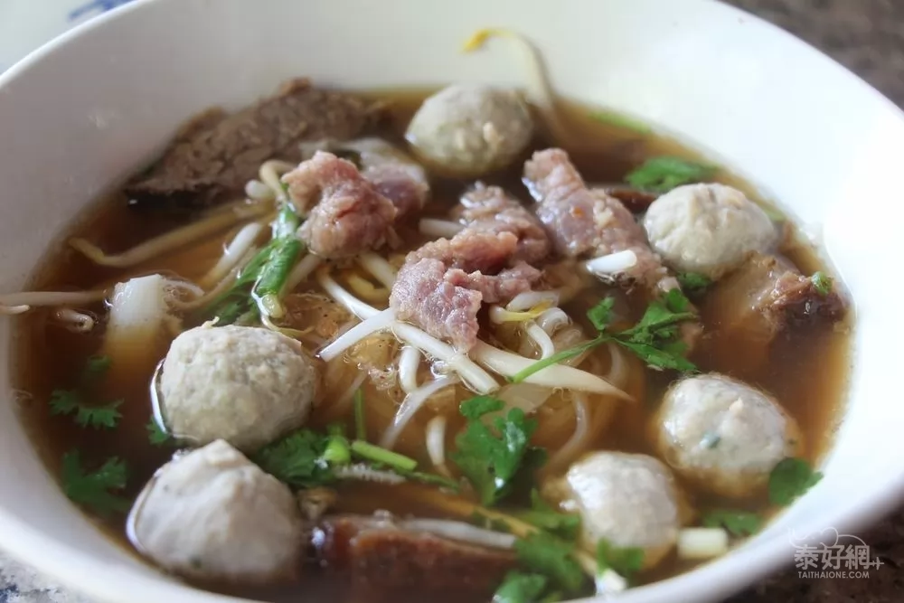 再是粿條,分牛肉和豬肉兩種,加上肉丸,普通1碗50銖、特級60銖。