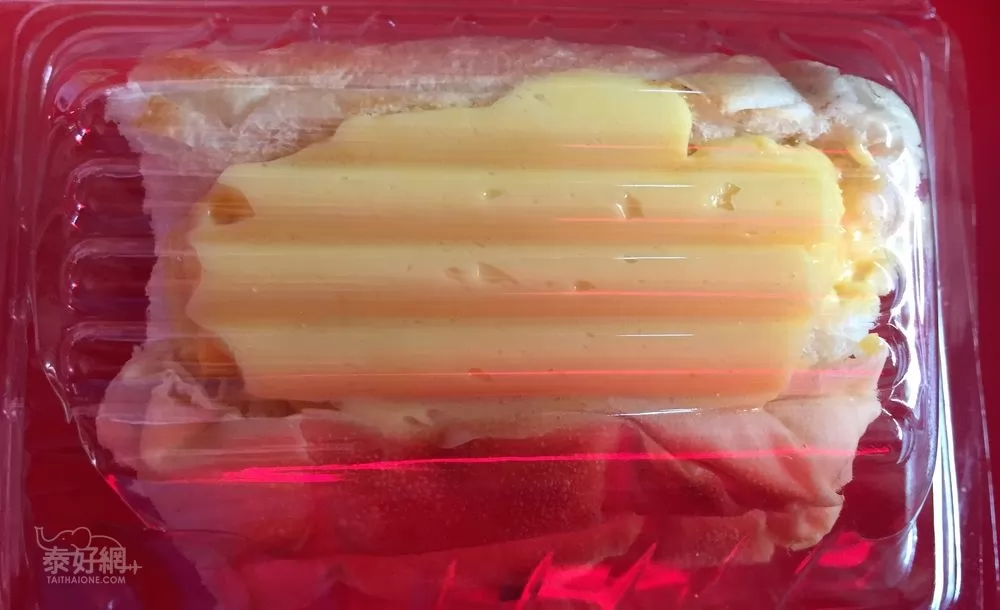 跟其他家不一樣的,這裡還有甜中帶鹹的口味,像是煙熏三文魚奶油起司、火腿奶酪、奶酪等,每個在30-49銖之間。另外,還有重口味的榴槤,1個40銖。