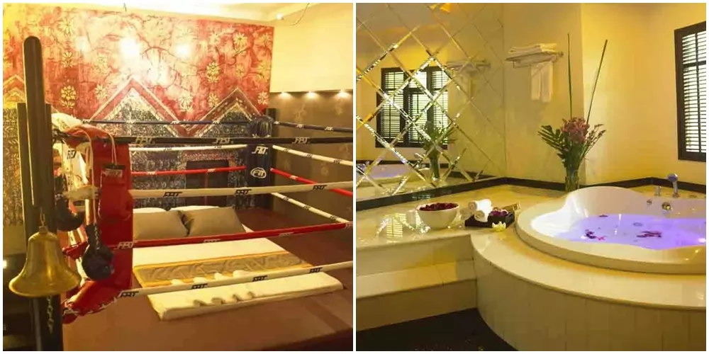 泰拳舞台房(Executive 318號)則是將床鋪在泰拳的擂台上,四周有繩索圍欄和泰拳的裝飾,很難想像有人會在拚鬥激烈的拳擊台上睡覺。