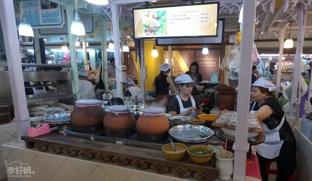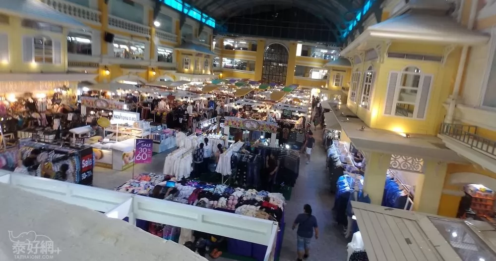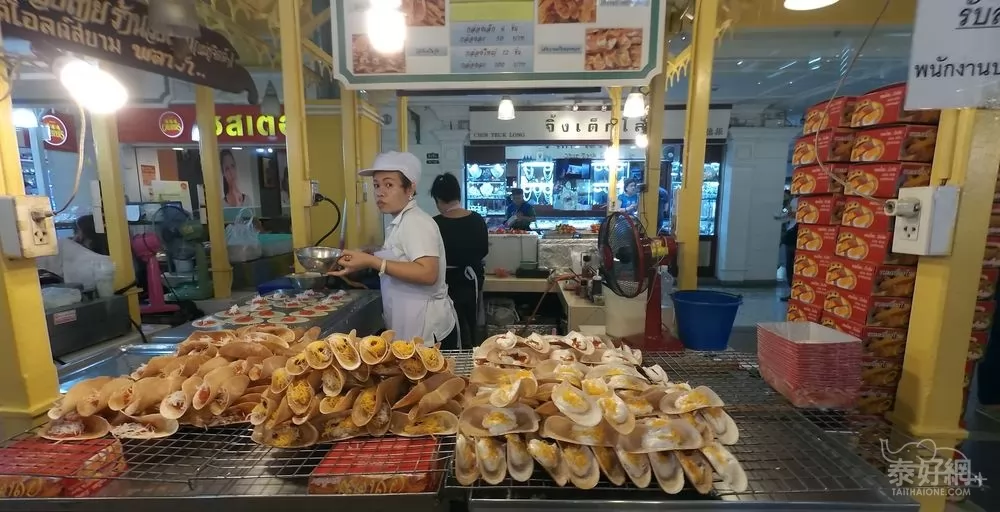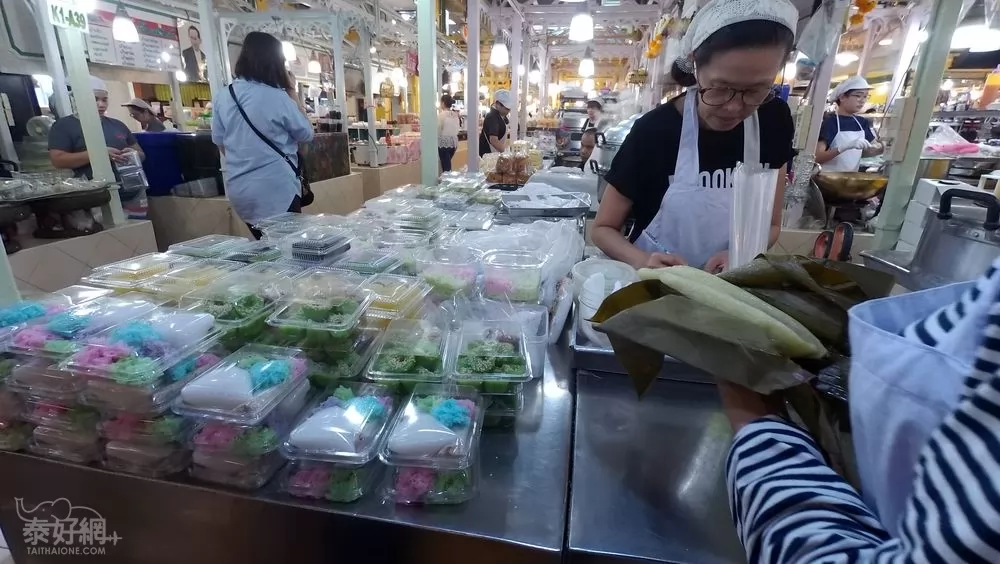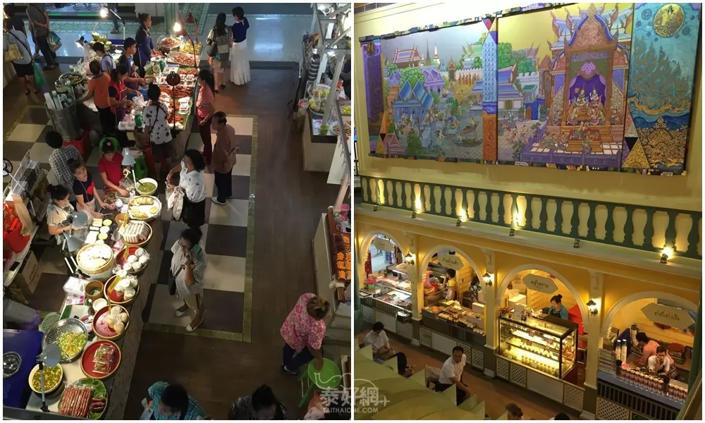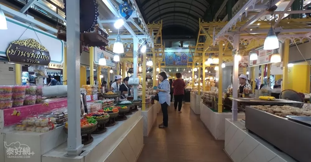 場內第一層賣服飾外,有專賣泰式小食區,種類很多,價錢便宜,值得來吃。