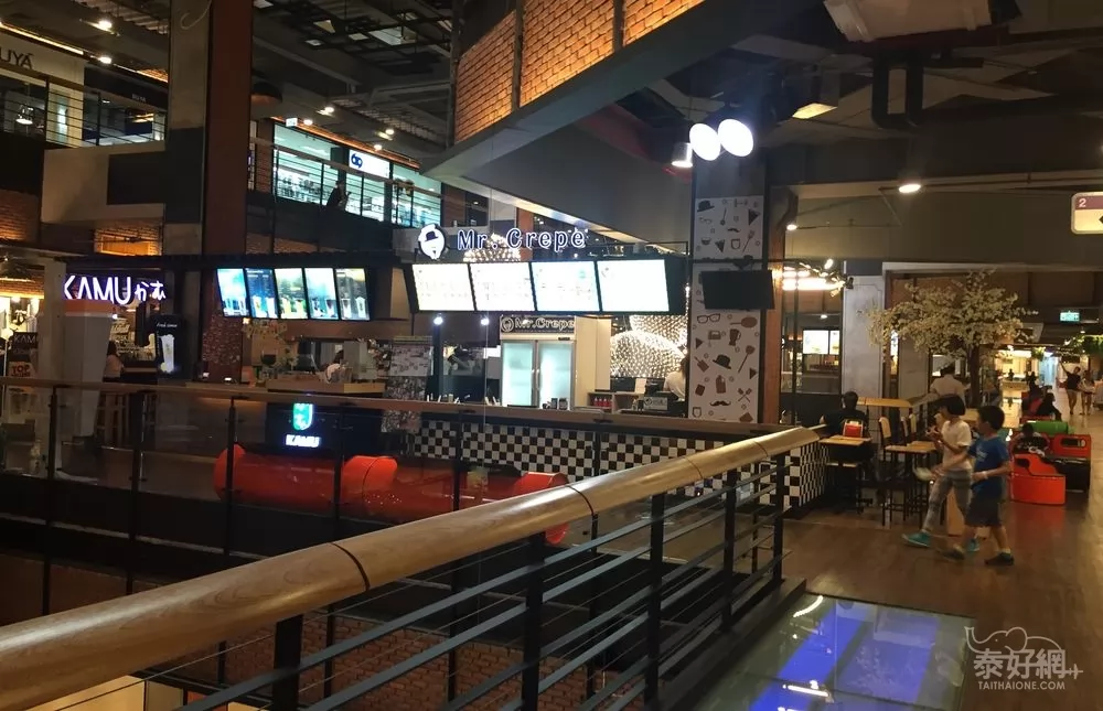 外牆紅磚貨倉式做主題,加上一些高吊的大燈飾,氣氛卻截然不同,此外商場樓上更有數排樓梯讓客人坐在一起聊天,一起看夜景,感受不同。