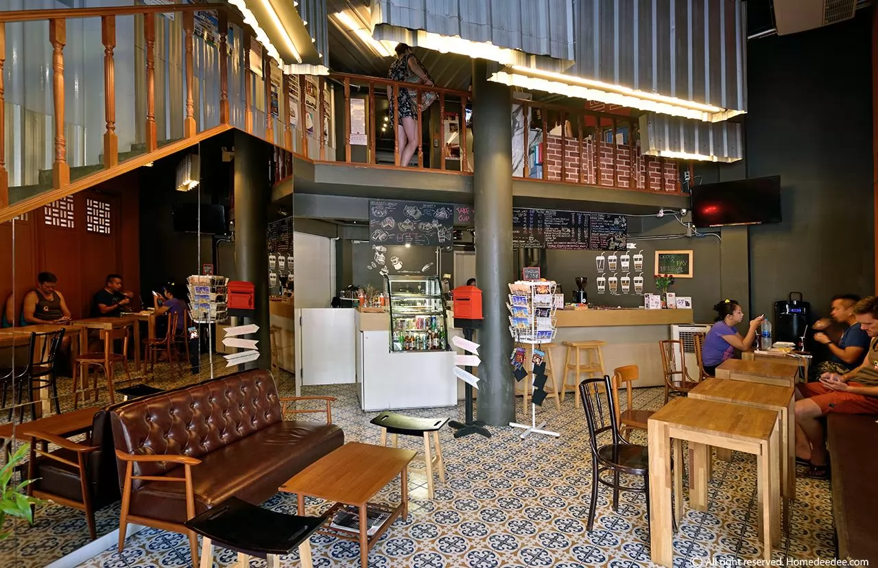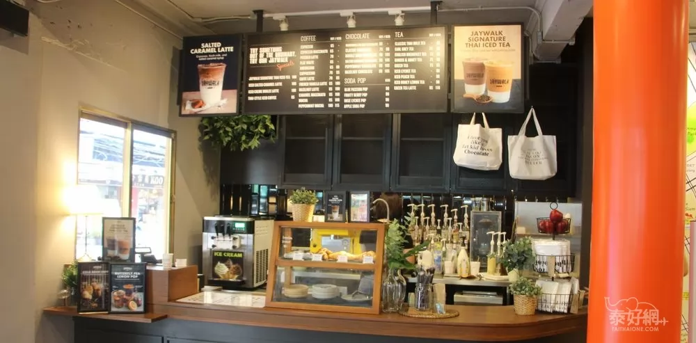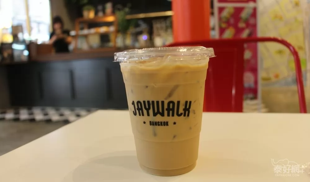 客人可以光顧1樓的知名咖啡店(JAYWALK Coffee),1杯熱拿鐵70銖、冰拿鐵85銖,香醇好喝;另外,冰泰奶(85銖)也不錯。