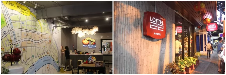 這家Loftel 22 Hostel(ลอฟเท็ล 22 โฮสเทล)青旅,位在石龍軍路(Charoen Krung)22巷口,離唐人街(Yaowarat)不遠。