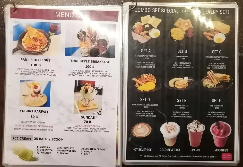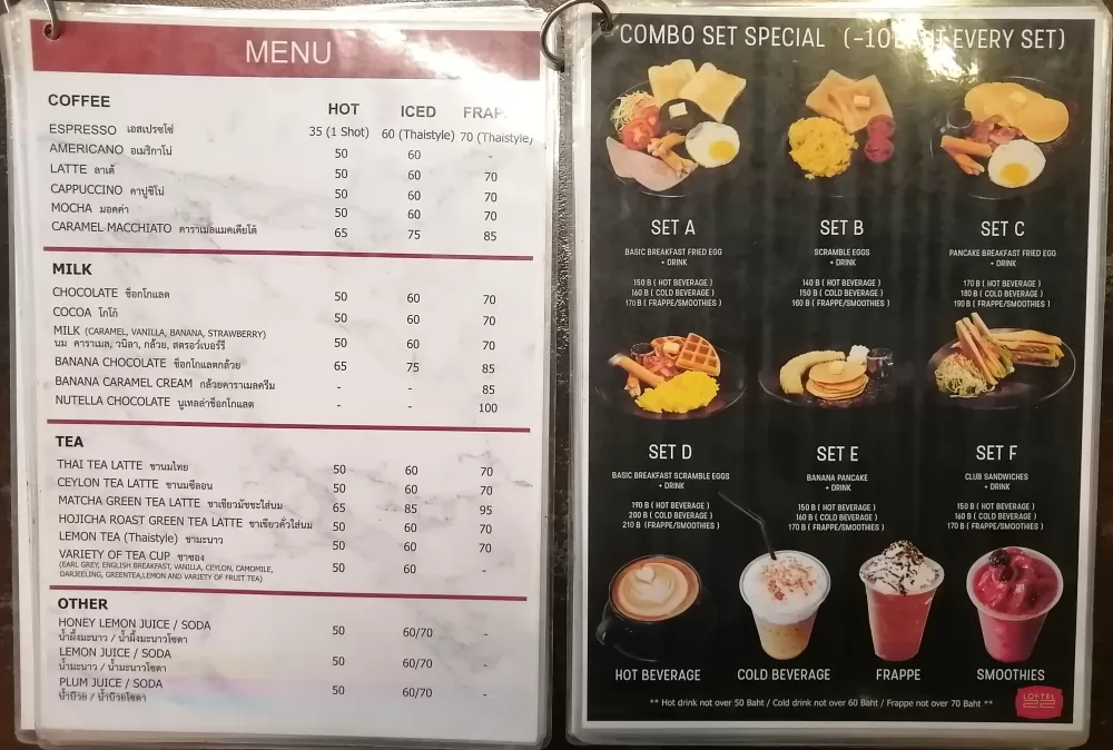 樓下是間咖啡廳,1杯熱拿鐵50銖、冰拿鐵60銖,也有賣些中國及泰國小吃。