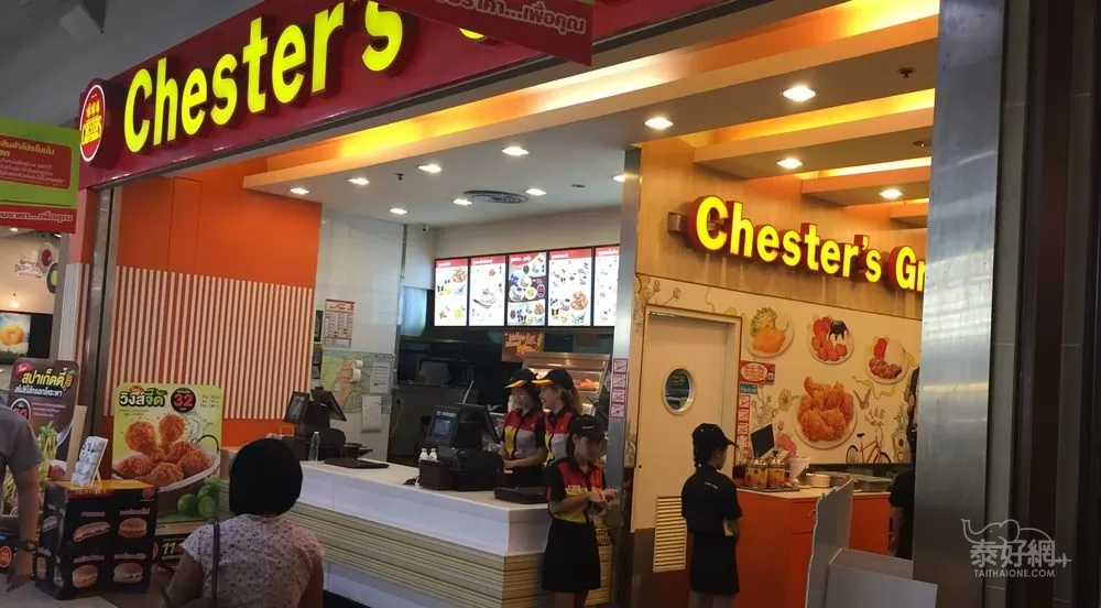Chester's Grill招牌是三隻很可愛的小雞,紅色的招牌、黃色的雞,就像台灣的頂呱呱,分佈在各百貨商場、BIG C超市等。