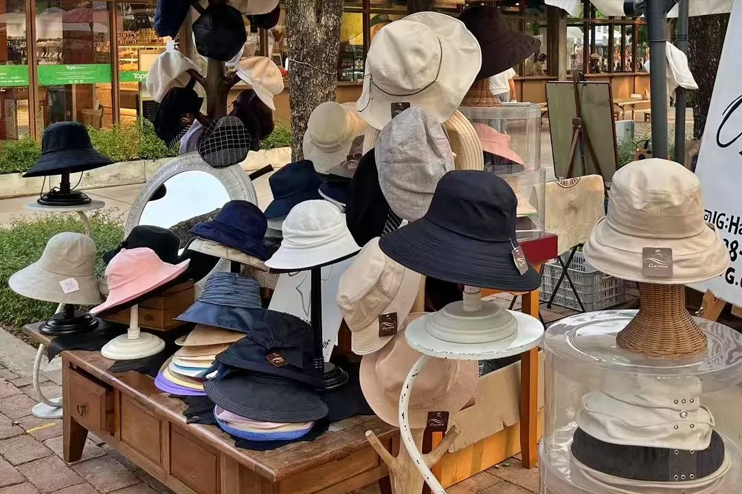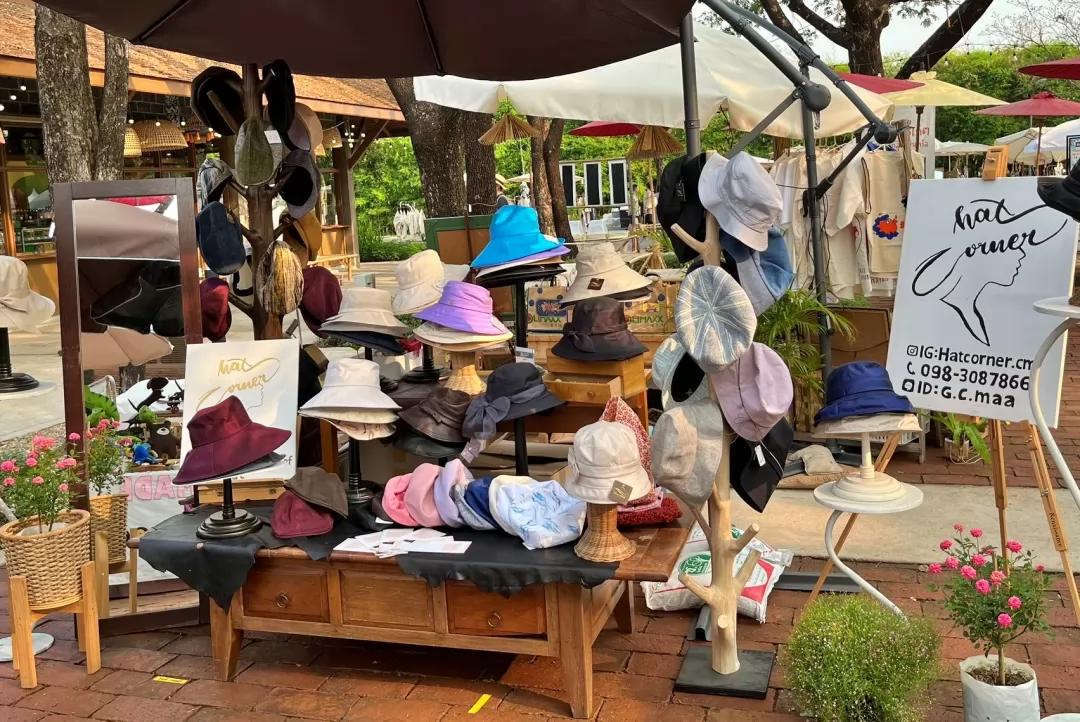 這裡也有服飾專區,像這家Hatcorner專賣的帽子,時尚又高品質,以前出口到日本,現在也擺攤零售,價格很親民,泰國天熱,正需要帽子防曬。