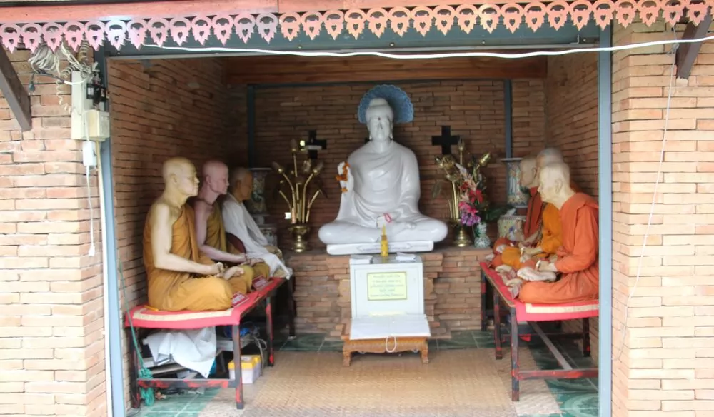 石佛頭後面有間小廟,供奉歷代住持逼真的雕像。