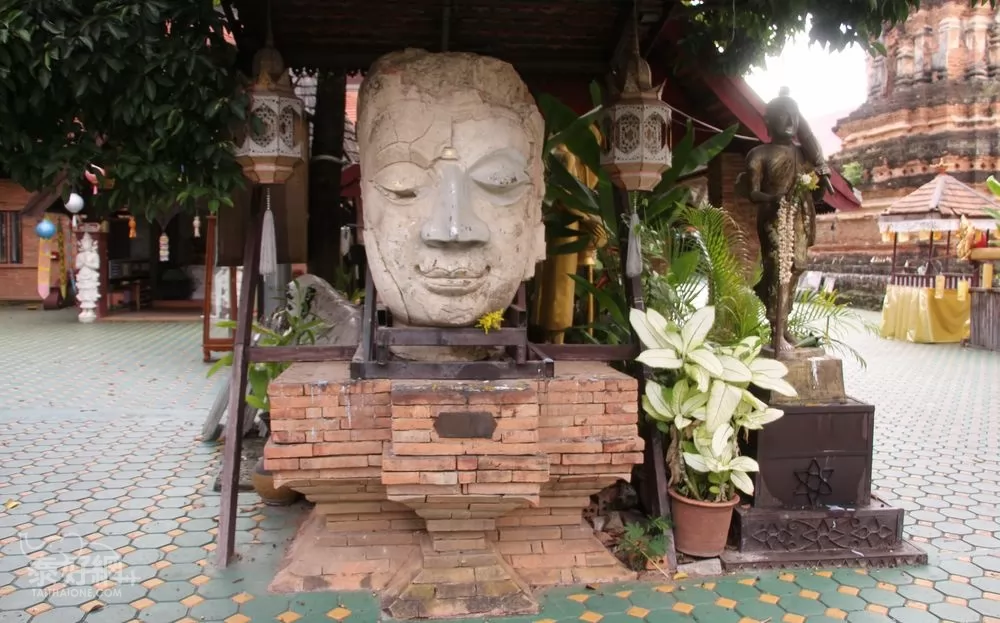 寺中心有顆白色的「石佛頭」,是傑林寺一大特色,十分有歷史痕跡的石佛頭,很引人注意。