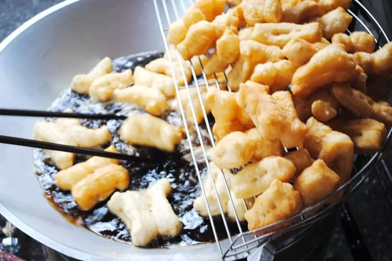 至於油條的吃法,泰國華人跟台灣和中國大陸差不多,搭配豆漿吃,或把油條掰成一節一節的,泡在豆漿或粥裡吃;也可以撕成兩半直接空嘴吃。