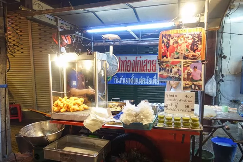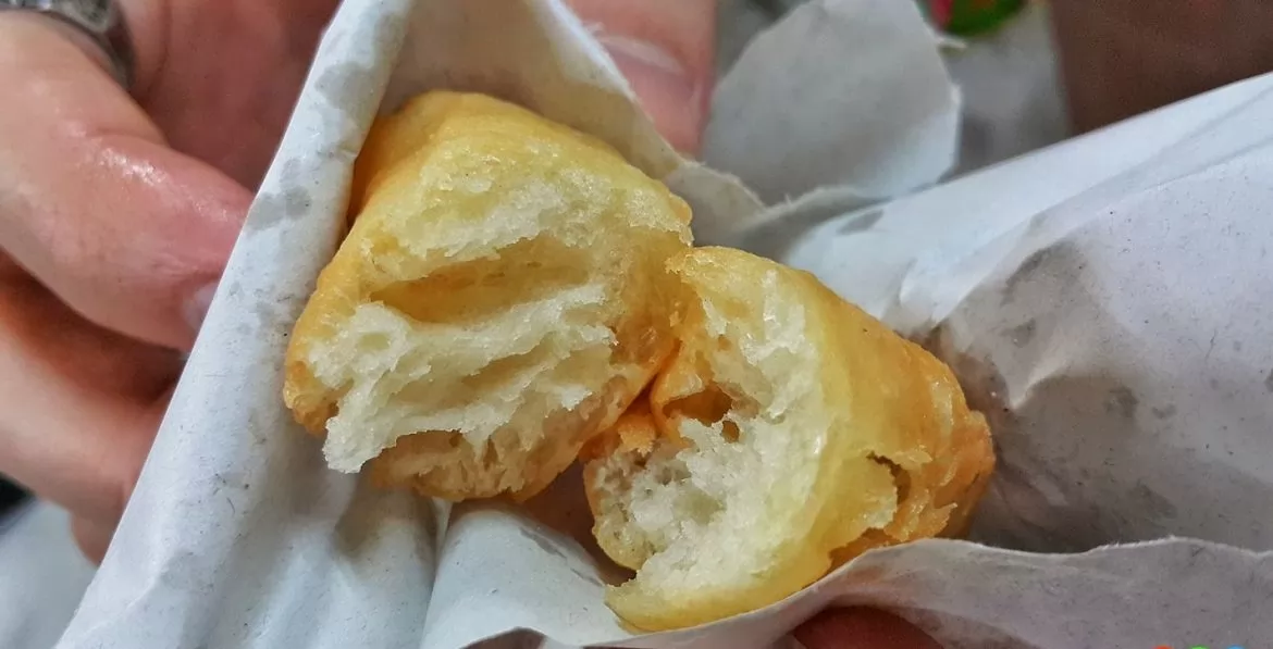 泰國的油條是台灣長油條的縮小版,長度約10公分左右,1個5-10銖,外表金黃,內裡細密綿軟,很有嚼勁,嚼起來有種淡淡的香甜,非常好吃。