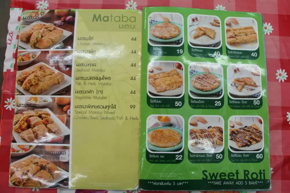 翻開店家提供的菜單,你會發現不論是Roti、還是Mataba的搭配多變化。