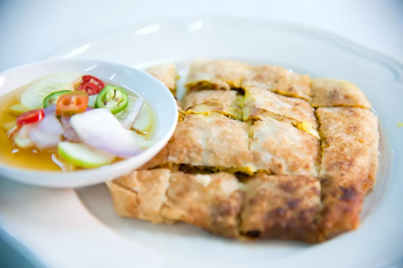 如果只是想淺嚐,建議點Roti,有原味、奶油煉乳、巧克力等多種口味可選,1份價格從19-60銖;Mataba雞肉、牛肉和海鮮1份都是44銖,吃的時候沾點酸甜的小黃瓜醬,爽口之外,也解煎餅的油膩。