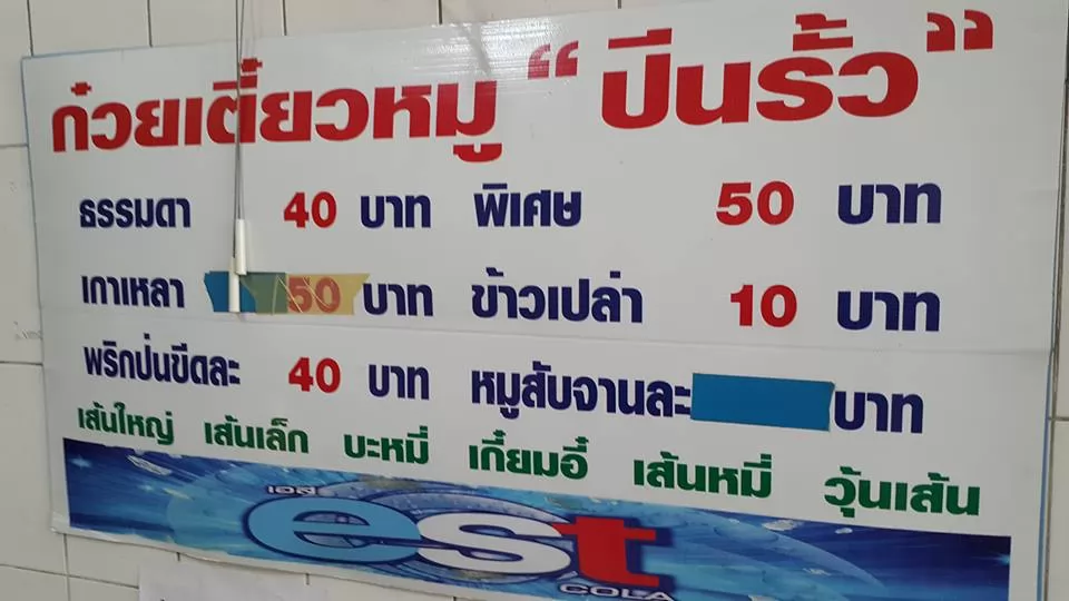普通1碗40銖、特級加料的50銖1碗。
