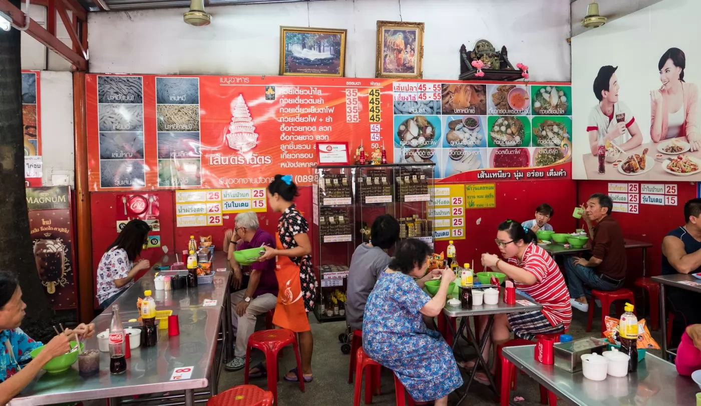 逛完市場還能到對面的小菜市場,和當地人擠在一起吃米粉湯。