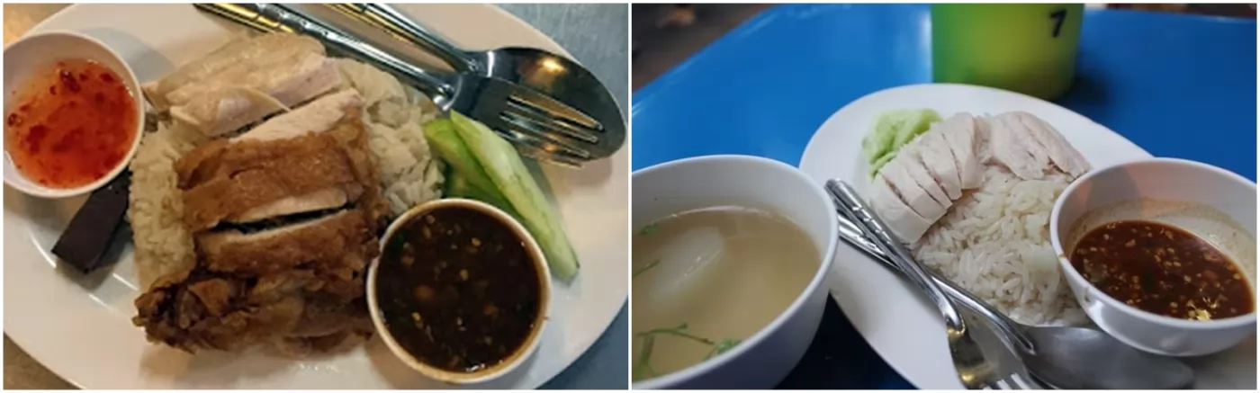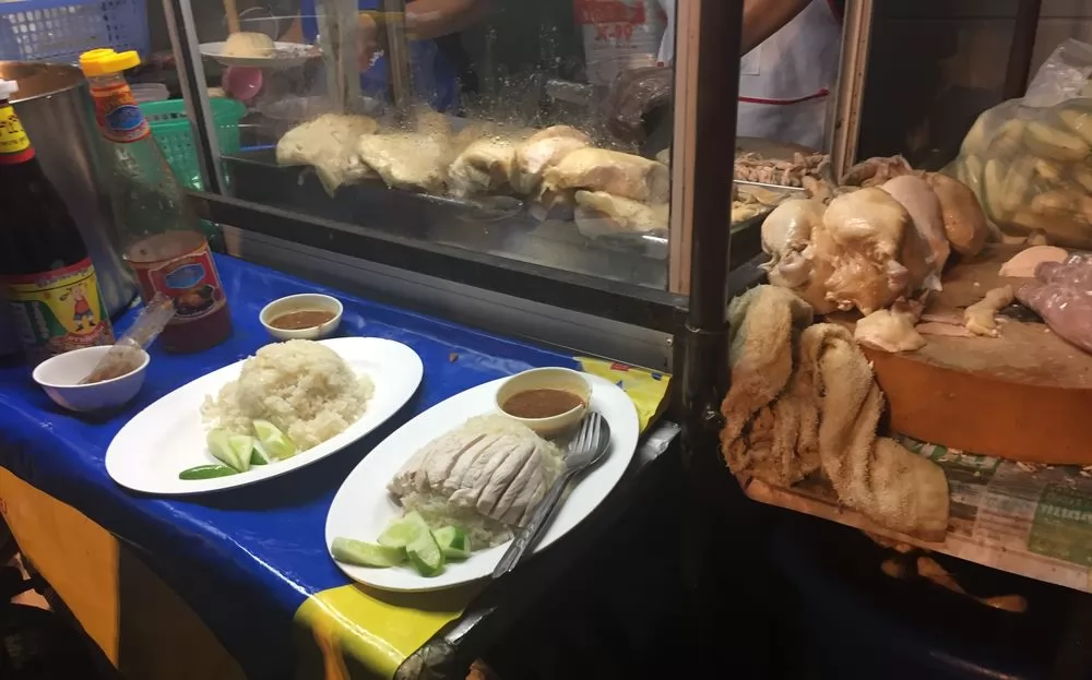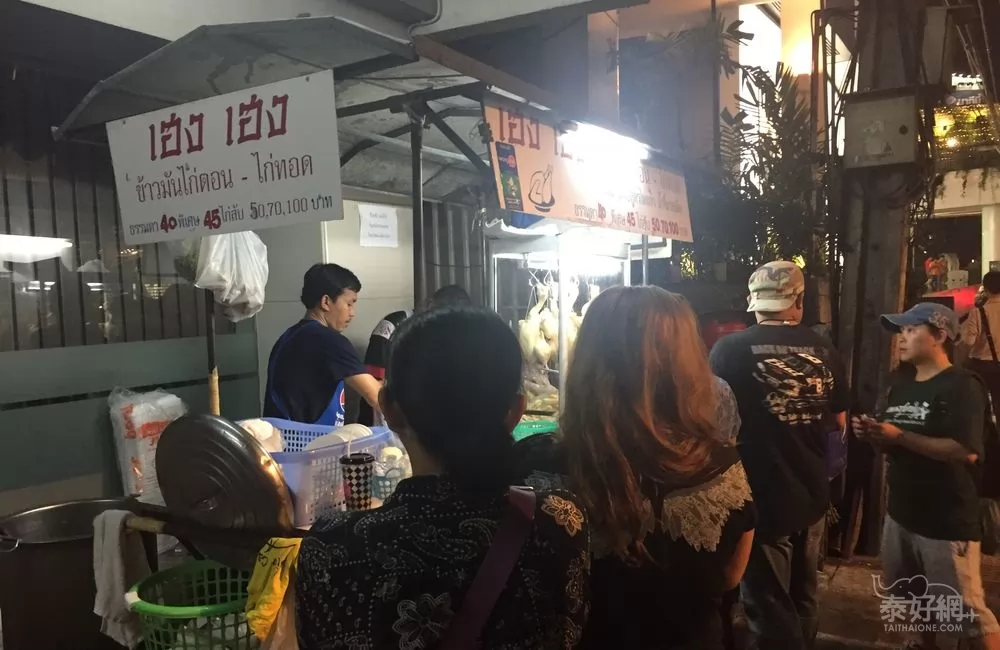 興興海南雞飯(เฮงเฮงข้าวมันไก่ตอน-ไก่ทอด),位於Emporium商場旁的路邊攤,很受街坊歡迎,只要一開始營業,座位必定爆滿!