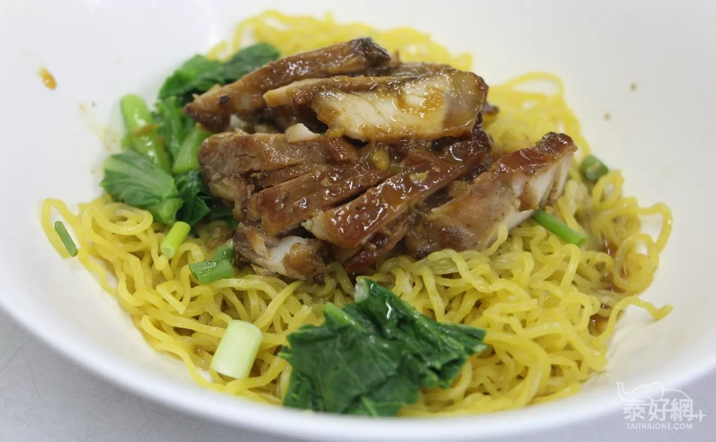 這碗烤鴨乾麵才40銖,麵是黃黃QQ的雞蛋麵,烤鴨的油融到麵裡,很入味!