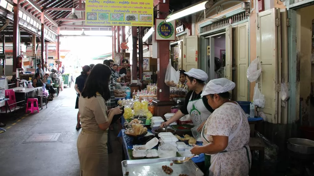 現在也像一個美食廣場,大部份餐飲店都是老店,售賣傳統泰式食品及甜品就有十多間,部份更只能在這裡才找得到,非常特別。