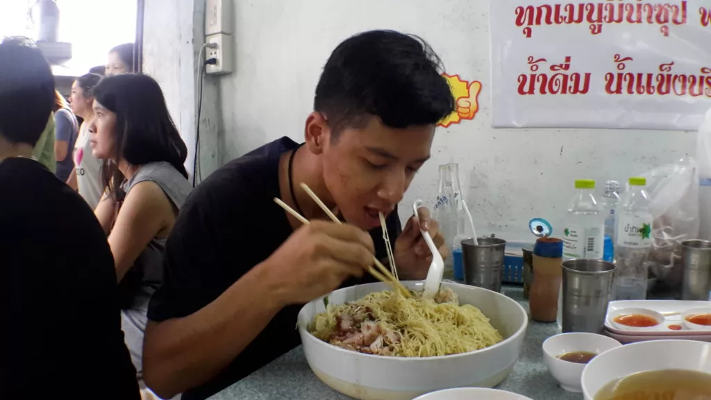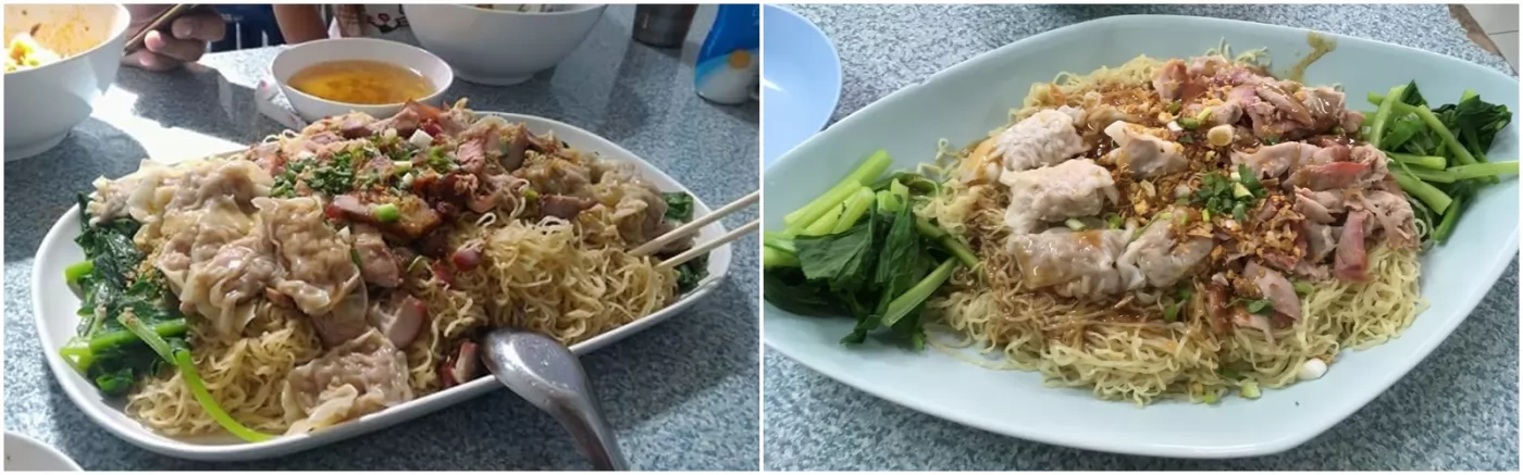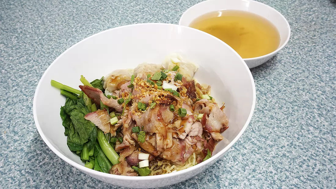 沒有大胃王的朋友,點1碗餛飩叉燒麵(40銖)就足以吃飽。