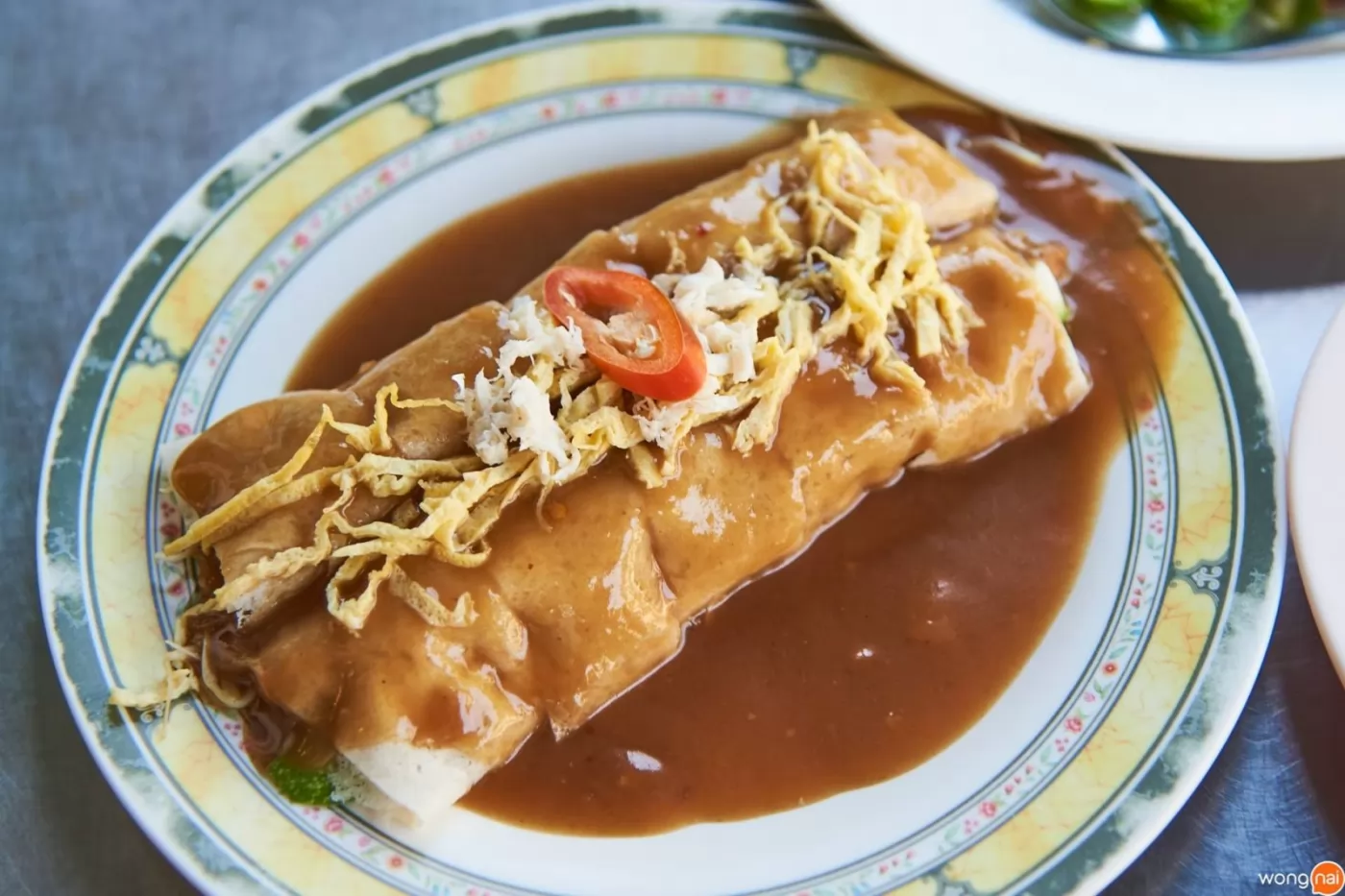 這裡比較特別是可以吃到潮州薄餅PorPia Sod(ปอเปี๊ยะสด),即點即作,用薄餅皮包着芽菜、滷豆腐、青瓜及臘腸,淋上酸酸甜甜的羅望子醬,然後在上面加上蟹肉及蛋絲,很值得一試。