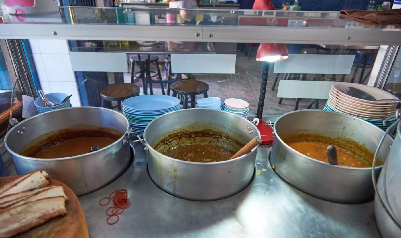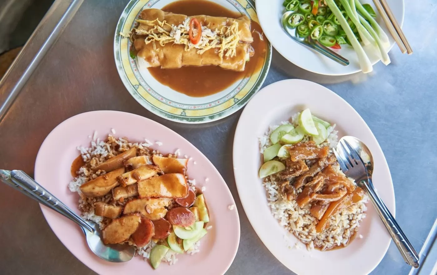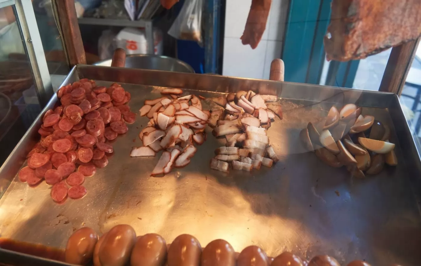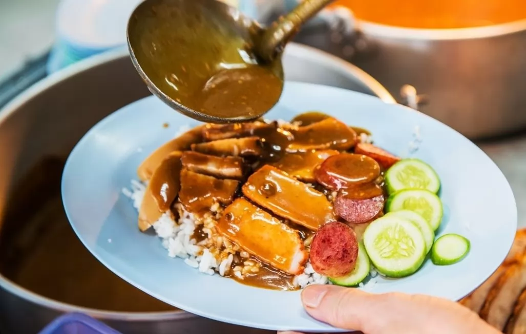 店內主要賣的飯類,咖哩牛肉飯、咖哩豬肉飯(是中式咖哩,不是泰式的),最熱門暢銷的是泰式叉燒飯:紅燒肉、香腸、脆皮燒肉+半顆糖心蛋,淋上特制的紅醬汁,征服了很多老饕客的胃;燒肉飯、牛筋飯等也很受歡迎。