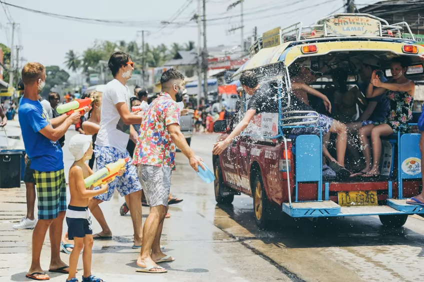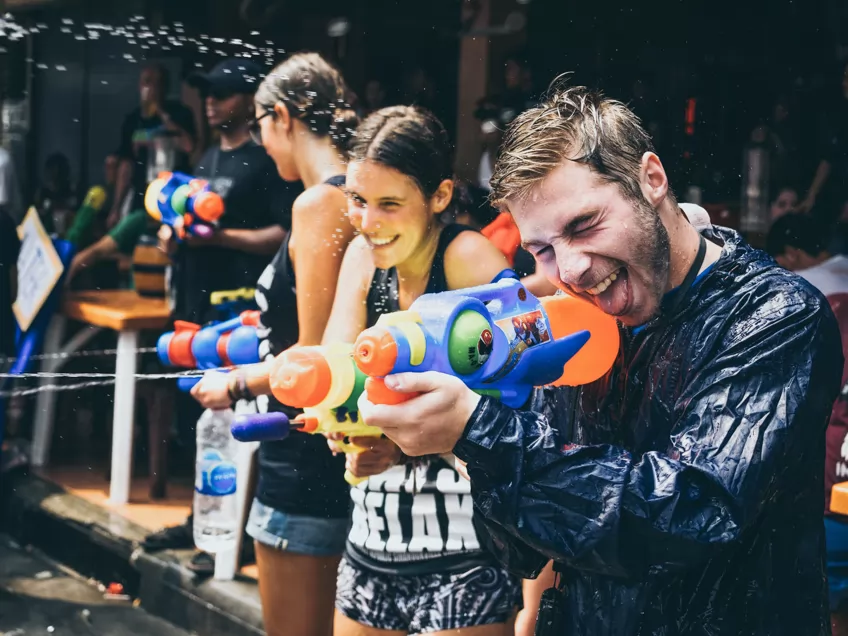 曼谷會封鎖街道使其成為潑水區,包括考山路、西隆路、暹羅廣場等,不僅是泰國人、還有外國遊客一起潑水歡度節日!