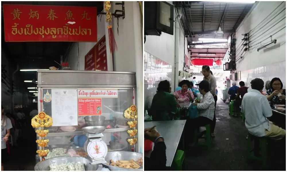 黃炳春魚丸(อึ้ง เป็ง ชุง ลูกชิ้นปลา)隱身於中國城耀華力路上小巷子的小騎樓旁,經營60多年的小吃店,以手工製作潮汕風味的魚丸出名,經常人聲鼎沸。