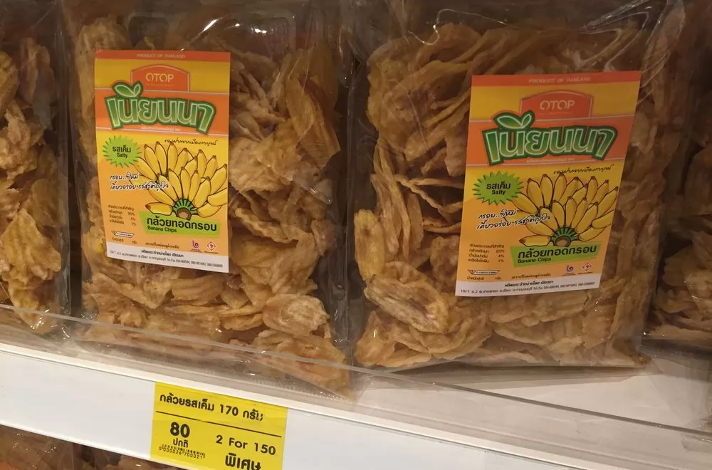 這個是泰國的香蕉乾,味道不錯,像薯片一樣!價格60-80銖1袋。作為零食是一個很好的選擇哦!