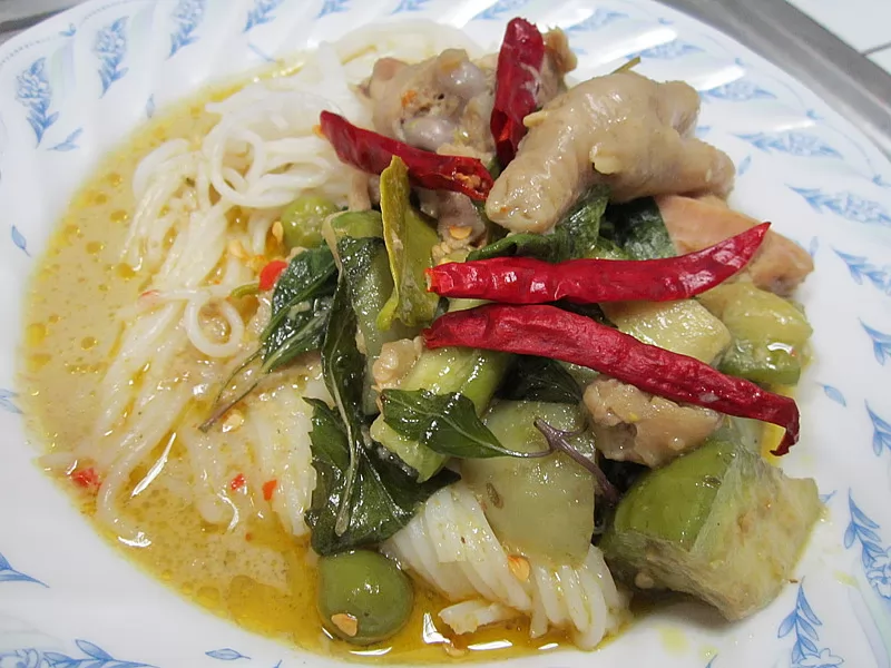 帶有甜味的綠咖喱雞湯,是當之無愧的泰國經典味道,不嘗嘗怎麼知道泰國的味道?與涼米線的搭配,吃起來又別有風味!