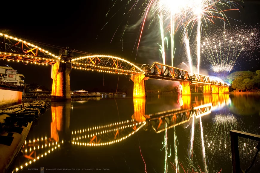 每年11月底到12月初,為桂河的紀念日,五彩繽紛的燈泡裝飾起鐵橋,有聲光及音樂表演,還有煙火的施放,以誌紀念。