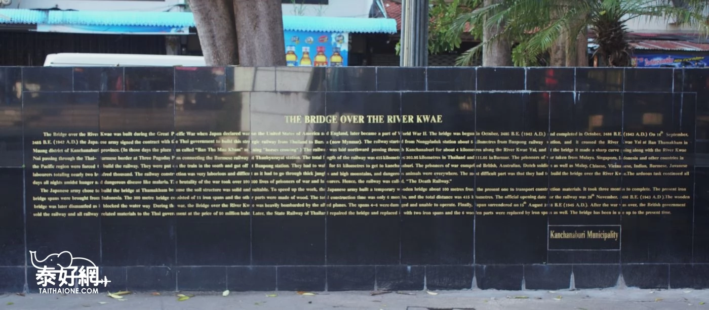 橋頭的一旁有紀念碑,用泰文和英文敘述過往的歷史,讓旅客參閱!