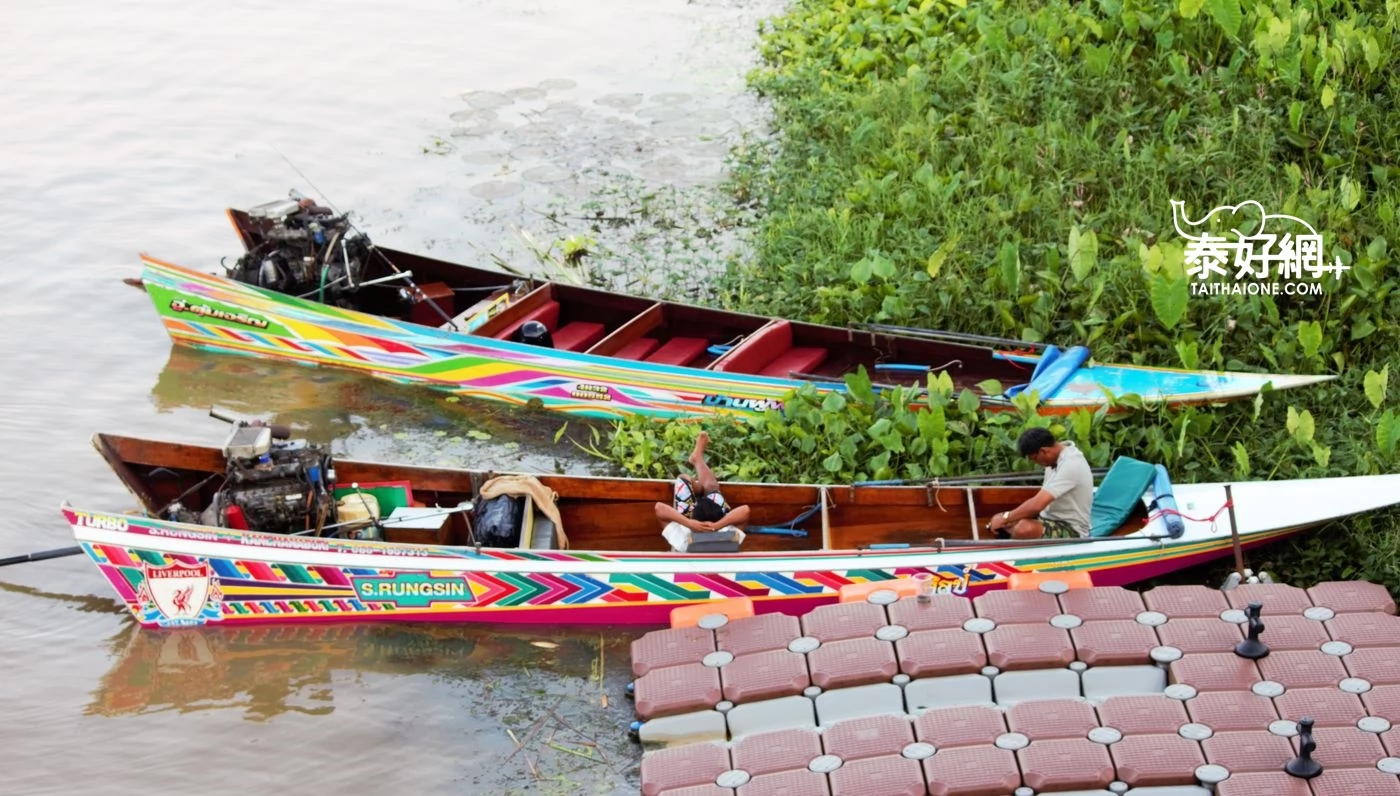 桂河邊的碼頭上,有幾艘遊船在等候客人上門。