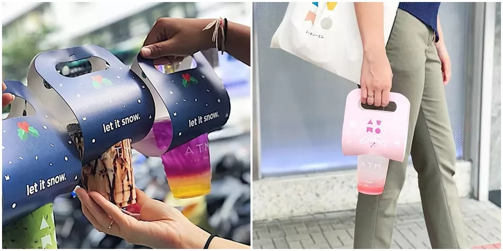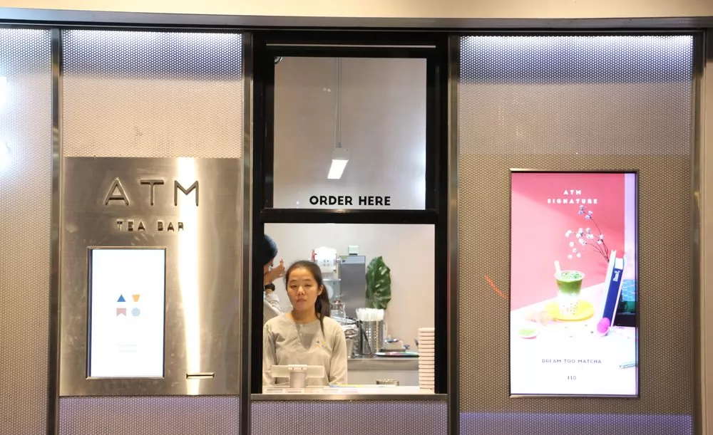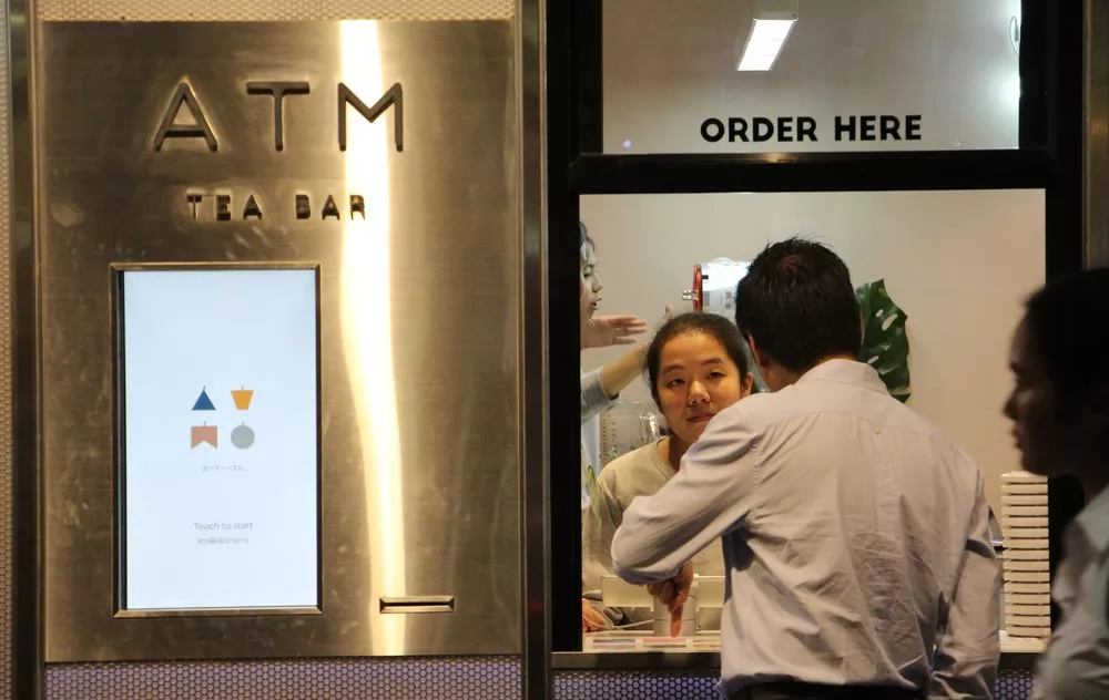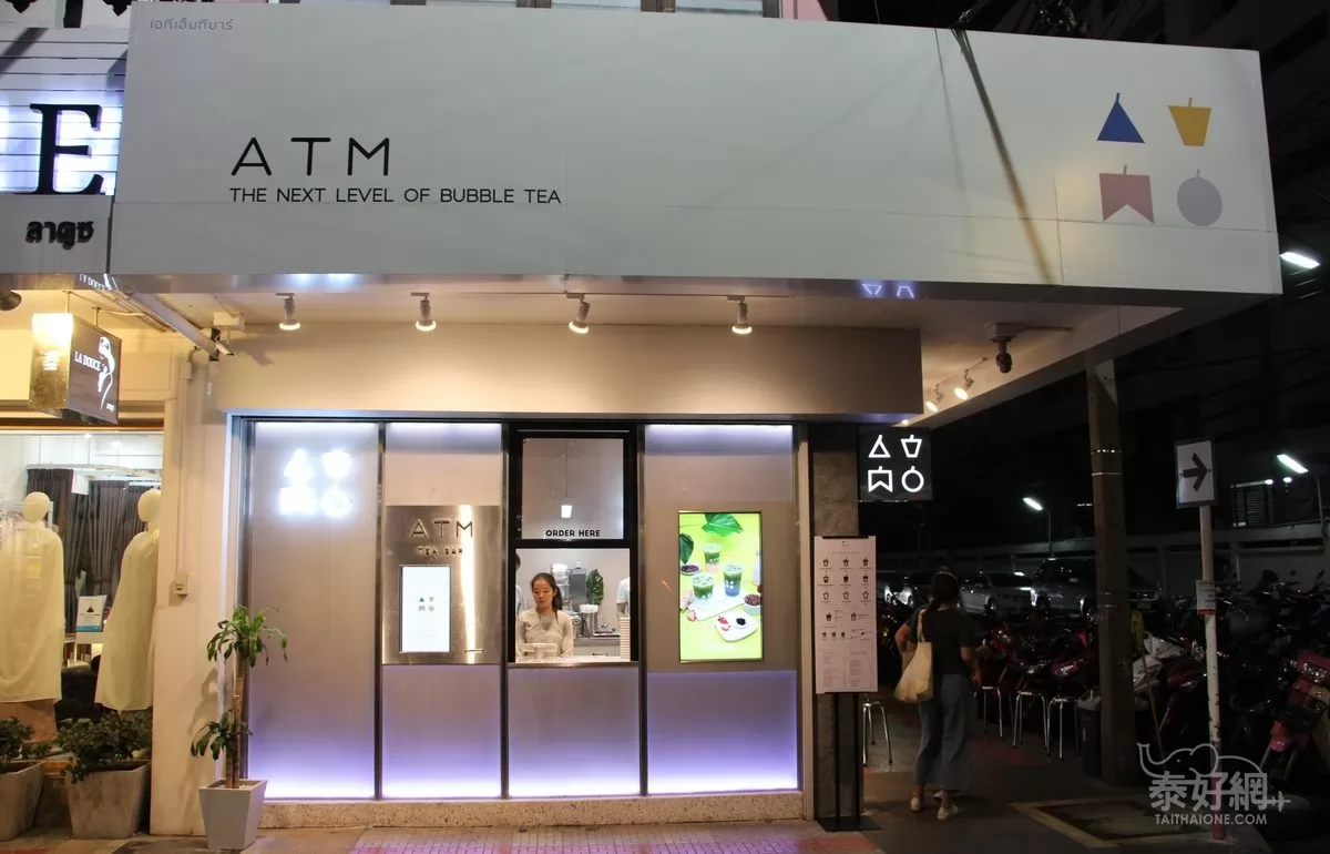 剛開始看到ATM Tea Bar的店家裝飾,妖妹想到會不是像自助提款機(泰國自動提款機叫ATM)一樣的方式,仔細一看,其實排隊的有兩條隊伍,一條是人工點單,另一條則是在類似ATM機那樣的機器邊點單。
