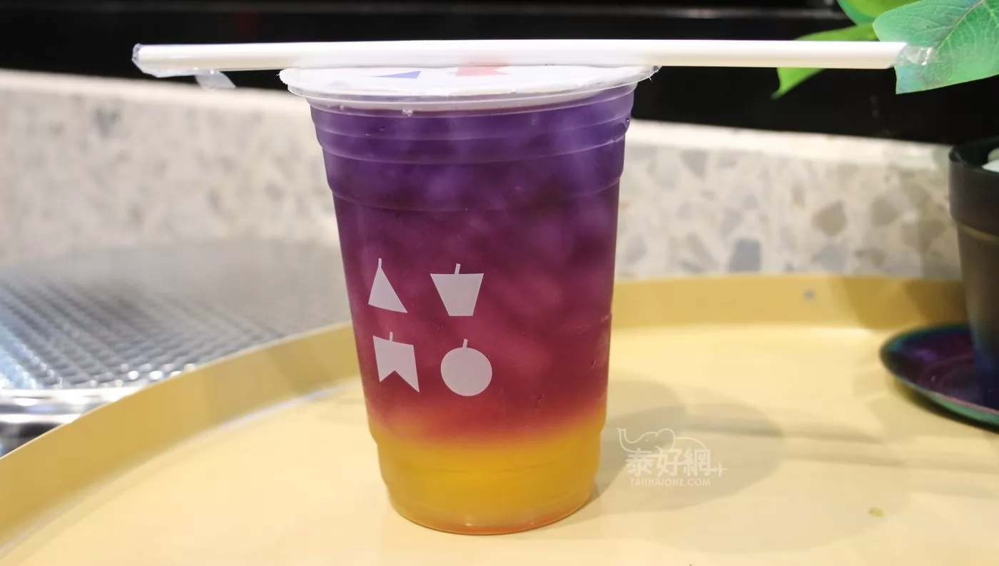 妖妹這次點了杯果茶嚐試一下口味,Galaxy Lemon Tea銀河檸檬茶(80銖),紫色的碟豆花+綠茶+檸檬,超高的顏值,廣獲很多女生青睞,是店裡的買氣王,喝起來的口感也很特別,帶有淡淡的花香,酸甜的檸檬味道,還不錯喝!