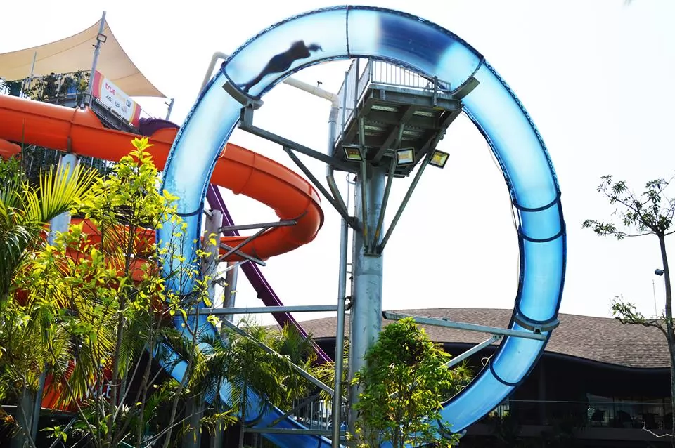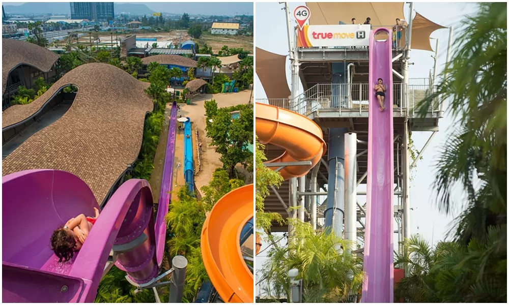 Aqualoop By True Move ,由加拿大引進的Aqualoop則是泰國最大垂直旋轉滑梯,個人滑水道,首先雙手交叉站進「傳送艙」,腳底閘門一打開,時速60公里,衝上45度角的滑梯管道,夠驚險刺激。